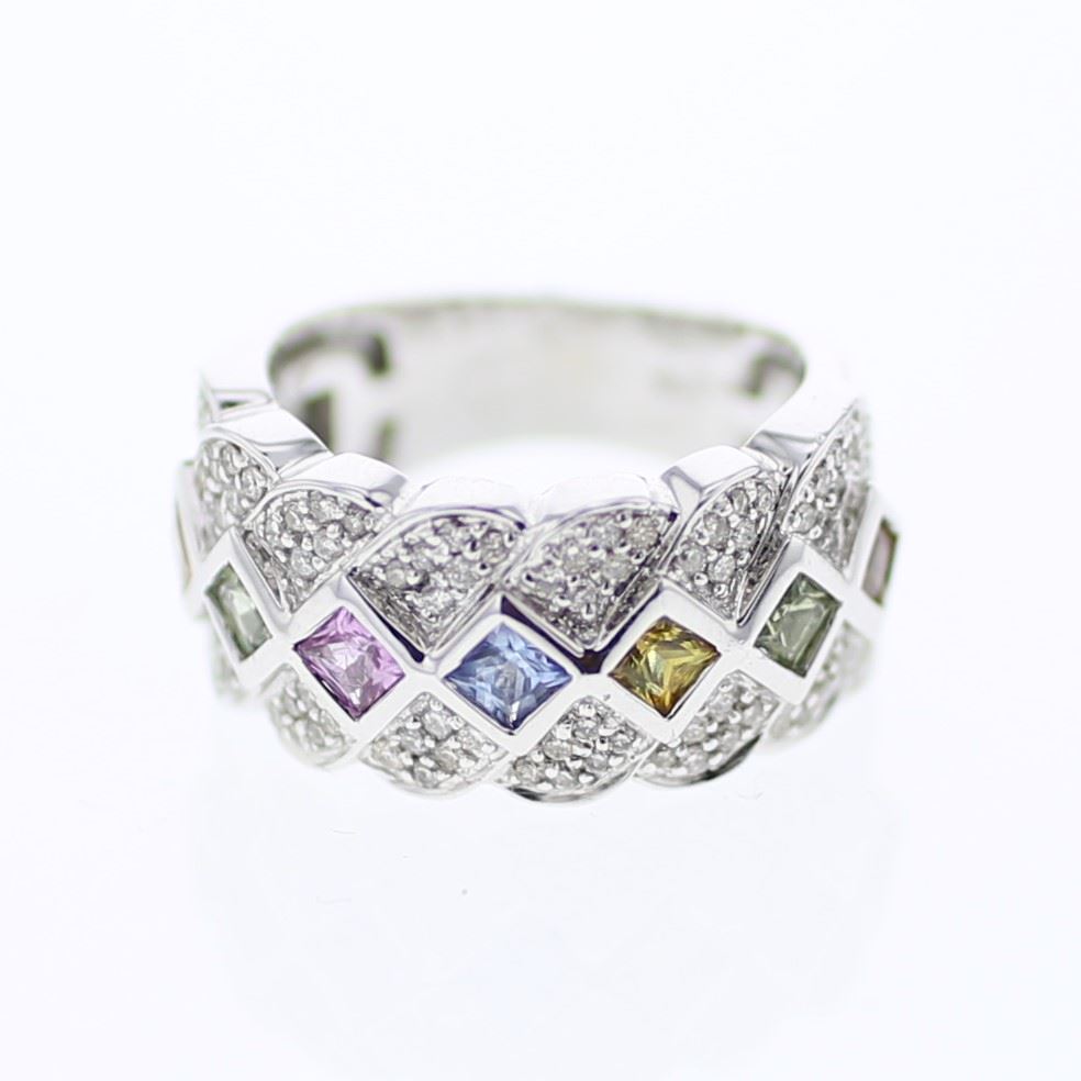 Princess cut Bezel-set Fancy Sapphire Diamond Ring in 14K White Gold
