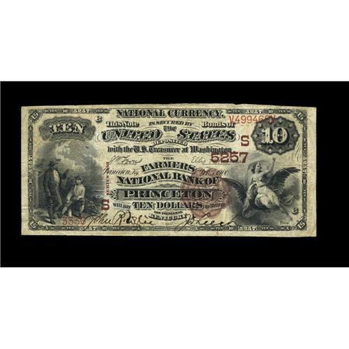 <B>Princeton, KY</B></I> - $10 1882 Brown Back Fr. 490 <B>The Farmers NB</B></I> Ch. # (S)5257<BR>This was Princeton's other issuer, and a few early notes have survived from here, including this attractive $10 Brown Back, which is the only example of its type in the census. Nice pen signed <B>Fine-Very Fine.</B></I>