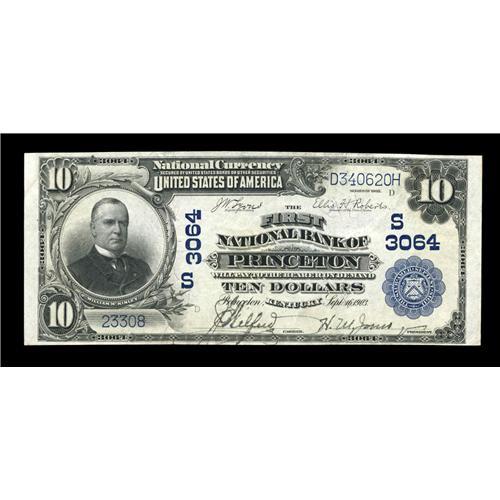 <B>Princeton, KY</B></I> - $10 1902 Plain Back Fr. 624 <B>The First NB</B></I> Ch. # (S)3064<BR>Princeton was Glenn Martin's home town, and during his more than 35 year collecting career he certainly devoted every effort to ferreting out better material from this community. Unfortunately, only one early note is known on this bank, an average grade Brown Back. The note in the Gale holdings is the nicest piece in the census from here, and the nicest note that Glenn could obtain in all his years of searching. <B>Extremely Fine.</B></I>