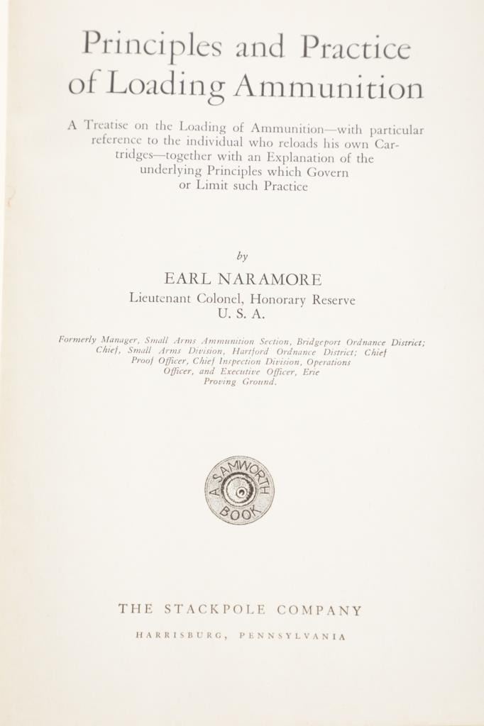 Included in this lot is the classic book, "Principles and Practice of Loading Ammunition", by Earl Naramore published by the Stackpole Co. Earl Naramore, Lt Col. US Army (ret.), was a renowned expert in ballistics, worked at Bridgeport Ordnance District as its manager, as well as other ordnance facilities, his career as a ballistics expert served him well as weapons tester for the Army. Simply the best single source on the theory behind loading of ammo as well as solid discussion on the tools involved at the the time it was written. It is a must have for anyone who is interested in understanding the principals of loading ammunition. It truly is a Magnum Opus on the subject and is as relevant today as the day it was written. It is a large book, with a fair amount of technical discussion in it, but anyone with a high school education should be able to digest it.