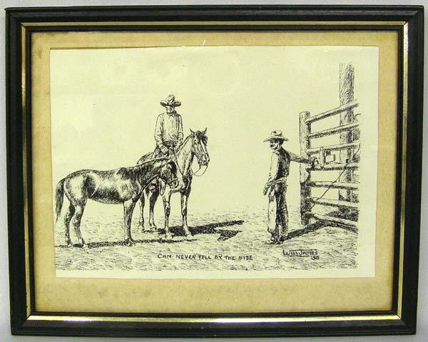 Framed Print ''Can Never Tell by the Size'' by Will James '35. Visual measures approx. 5.75''Hx8''W. Buyers Pay Actual Shipping and Handling Charges(see terms and conditions for more information).