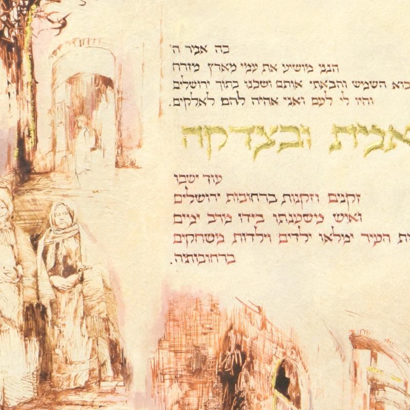"Od Yeshvoo" is a mixed media giclee on handmade Indian paper with goldleaf by Brachi Horen, hand signed by the artist! This creation received personal attention by the artist in the form of water coloring and gilding. Includes Certificate of Authenticity! Measures approx. 23" x 15.5" (with border), 14" x 20" (image).