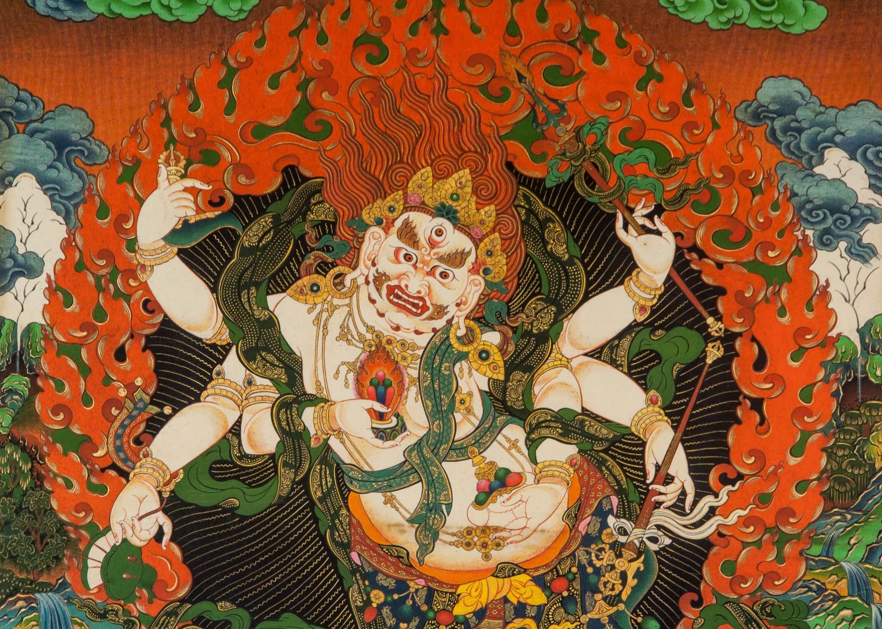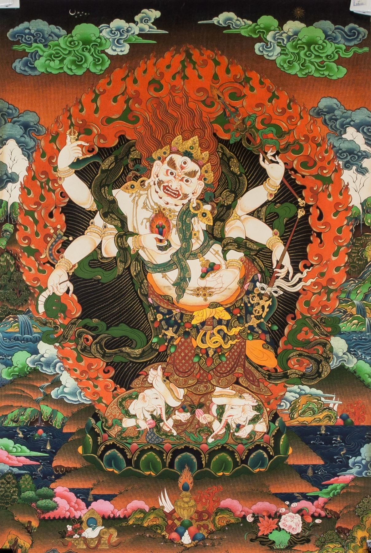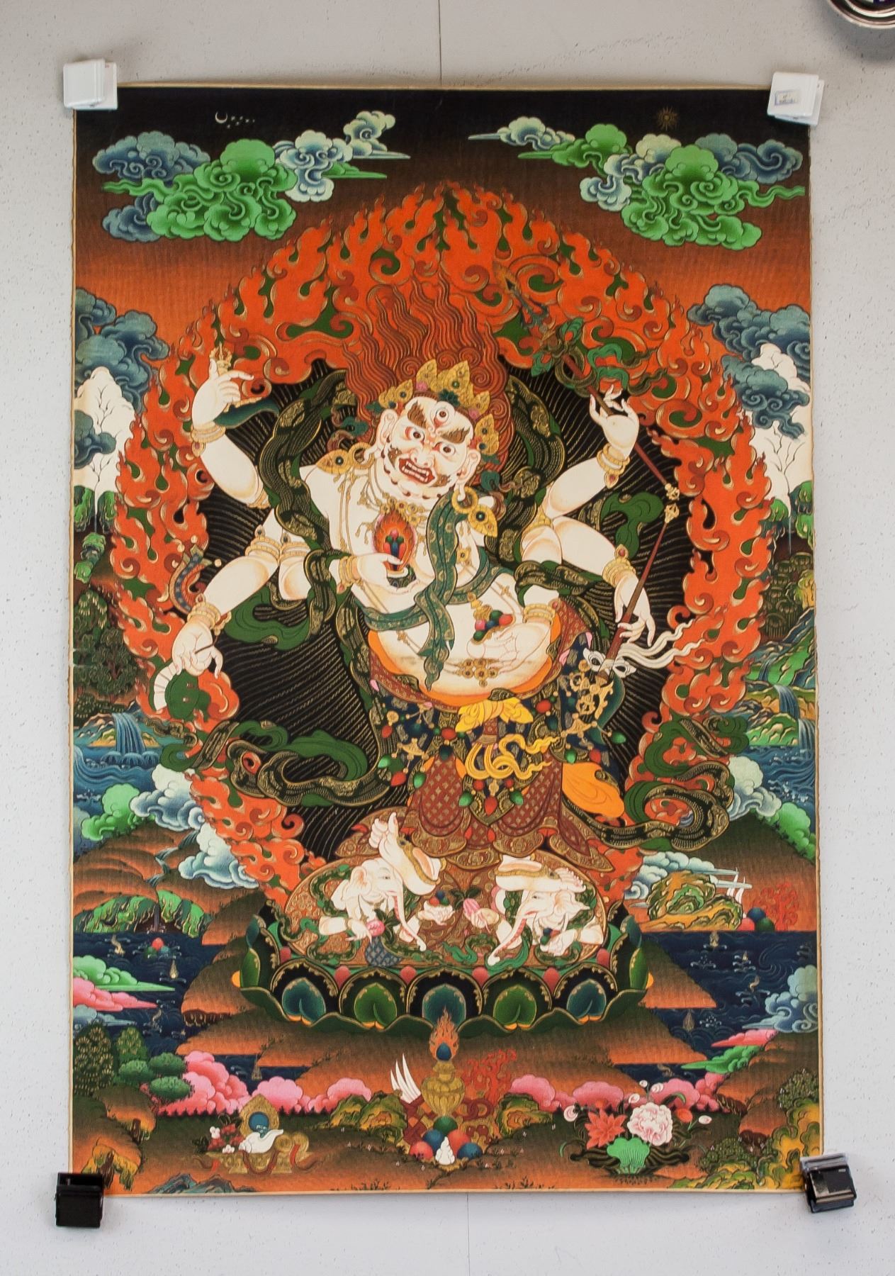 Print on canvas, featuring Black Mahakala thangka, 90 x 60 cm