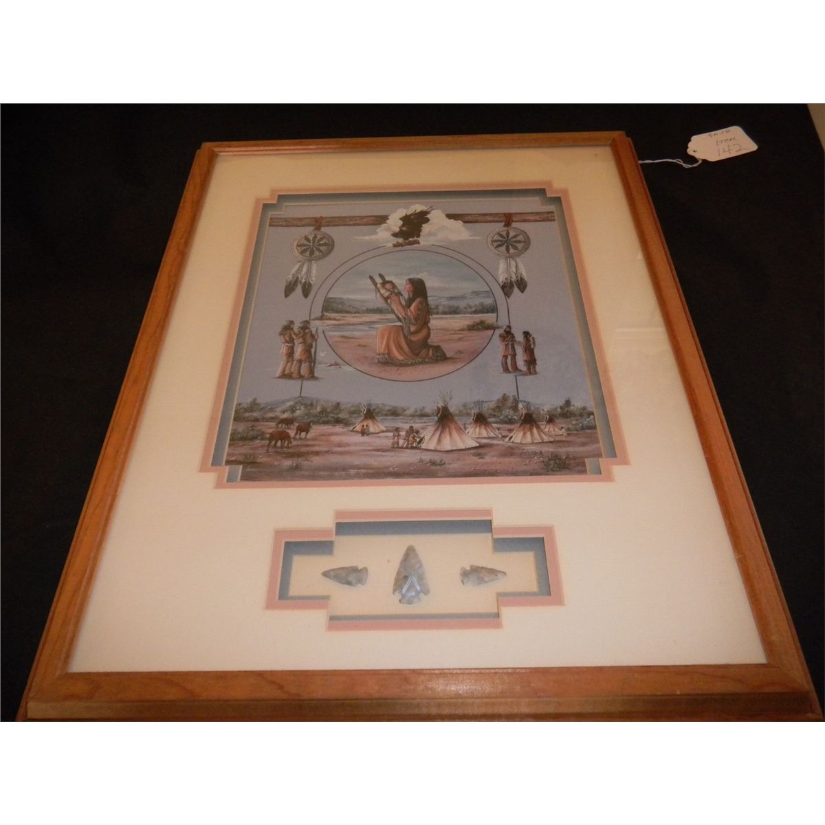 Print is framed and triple matted with three arrowheads. Title of Picture is Sacajawea. Actual picture is 11" x 12" with frame measures 21"x17 1/2" Shipping $30.00