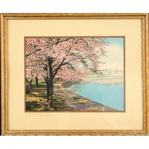 This beautiful print is an excellent example nature?s majesty. The use of blues to cool and fade the background shows an understanding of nature and a control over pigment. This detailed print is masterfully framed in a gold decorative wood frame done in ovals and lines. The entire piece measures 10? x 11.5?.