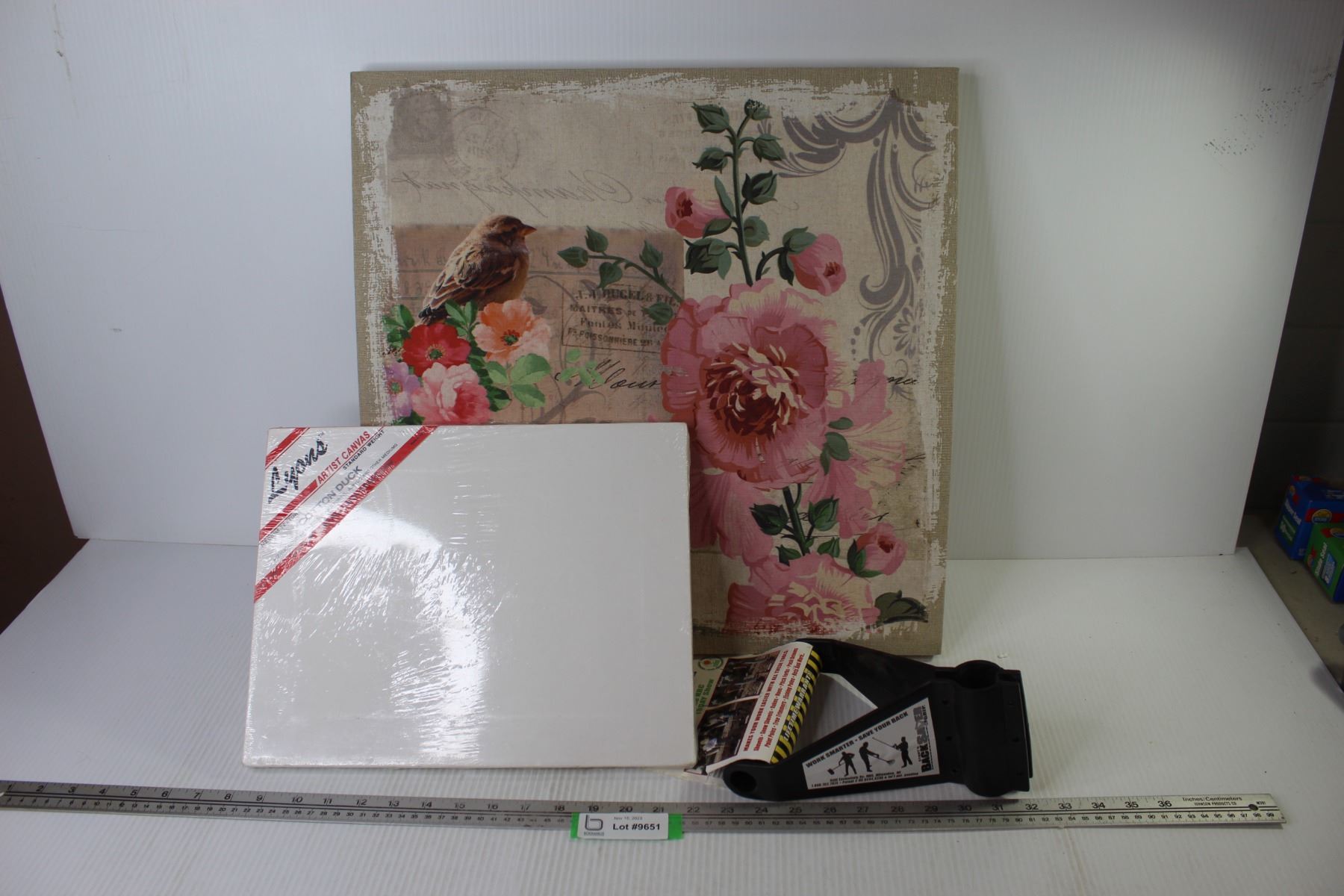 Print on Cloth of Bird & Flowers - Back Saver Garden Tool Handle - Artists Canvas