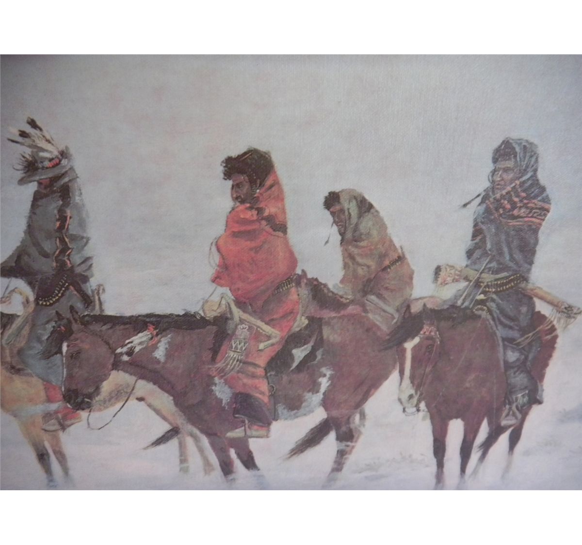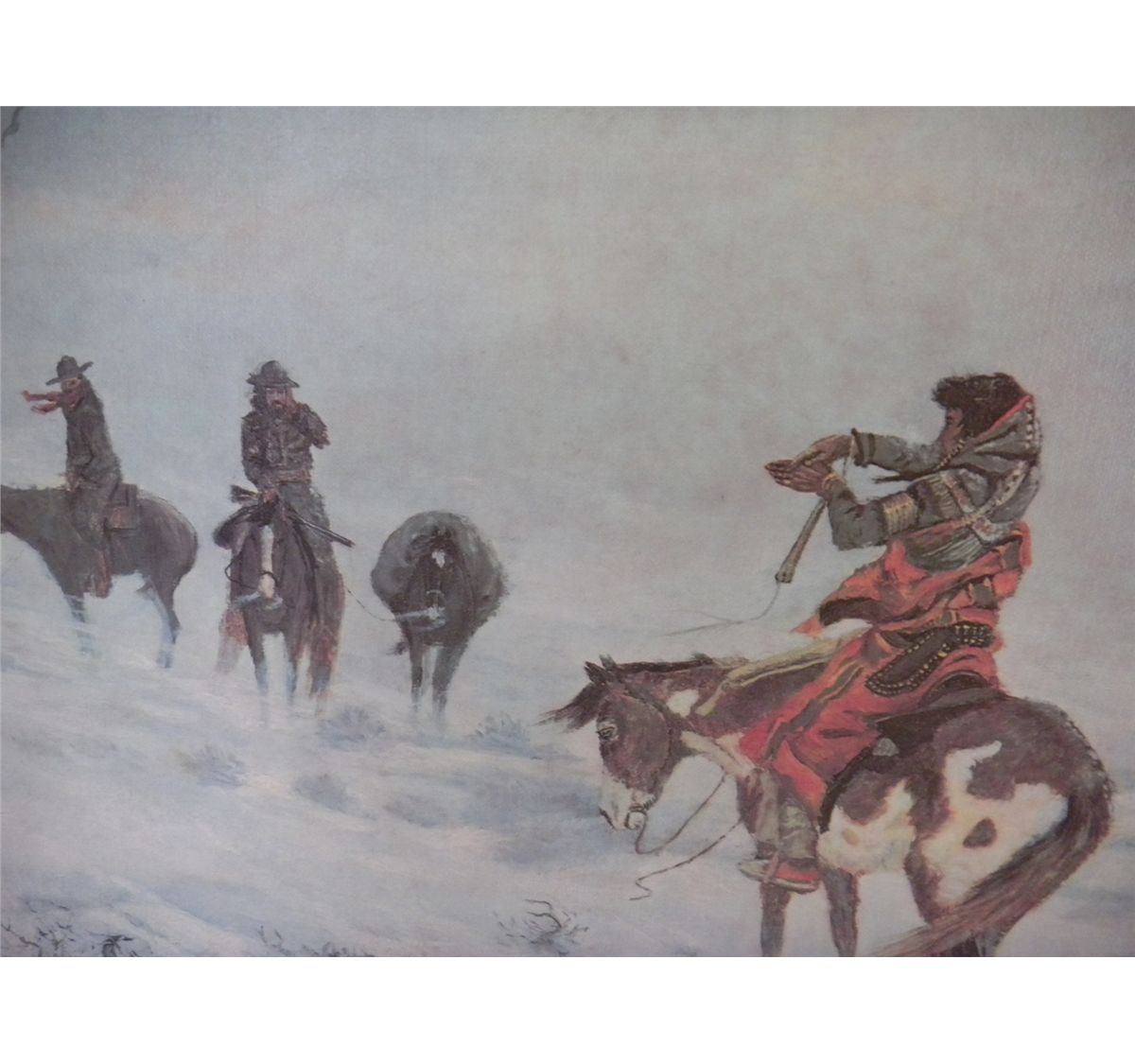 Lost in Snow Storm by C. Russell. This is a lithograph on canvas. Measures 35x20 inches. Shipping $30.00