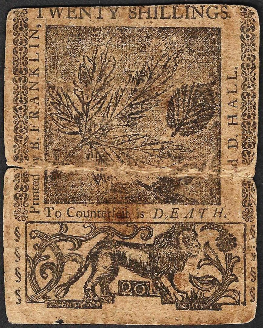 Printed by Ben Franklin June 1, 1759 Delaware Twenty Shillings Colonial Currency