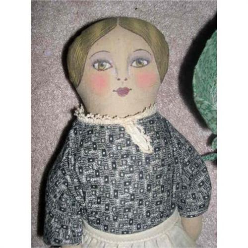 I'm not sure of the age of this printed cloth doll but am guessing the 1950's as she is cotton stuffed. The dress is machine stitched. She has a great printed face and hair style. The black material has worn through on her feet and on the one foot you can see the cotton stuffing. She is tightly stuffed. Her legs are sloppy but she still need to be put up next to something to be able to sit. There is one spot on the back of her bonnet and the apron is yellowed some. She is from a smoke free environment. Buyer to pay $10 for U.S. shipping, insurance, and handling. If you can love her, please bid. Thanks for viewing.