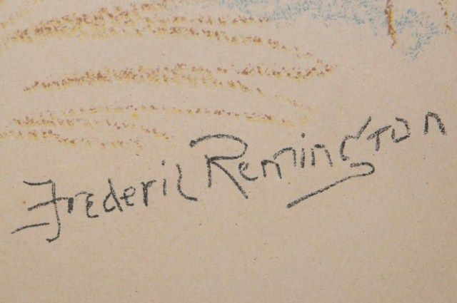 Printed lithograph of Calvary Sergeant marked lower left, copyright by Robert Howard Russell with Frederic Remington signature in block at lower right. The artwork measures approximately 20”x15” and was produced during the artist life. The condition is very good to near fine with very slight paper age and minor discoloration. Beautifully framed and matted. From the Robert E. Petersen Estate. Est. $350-$700