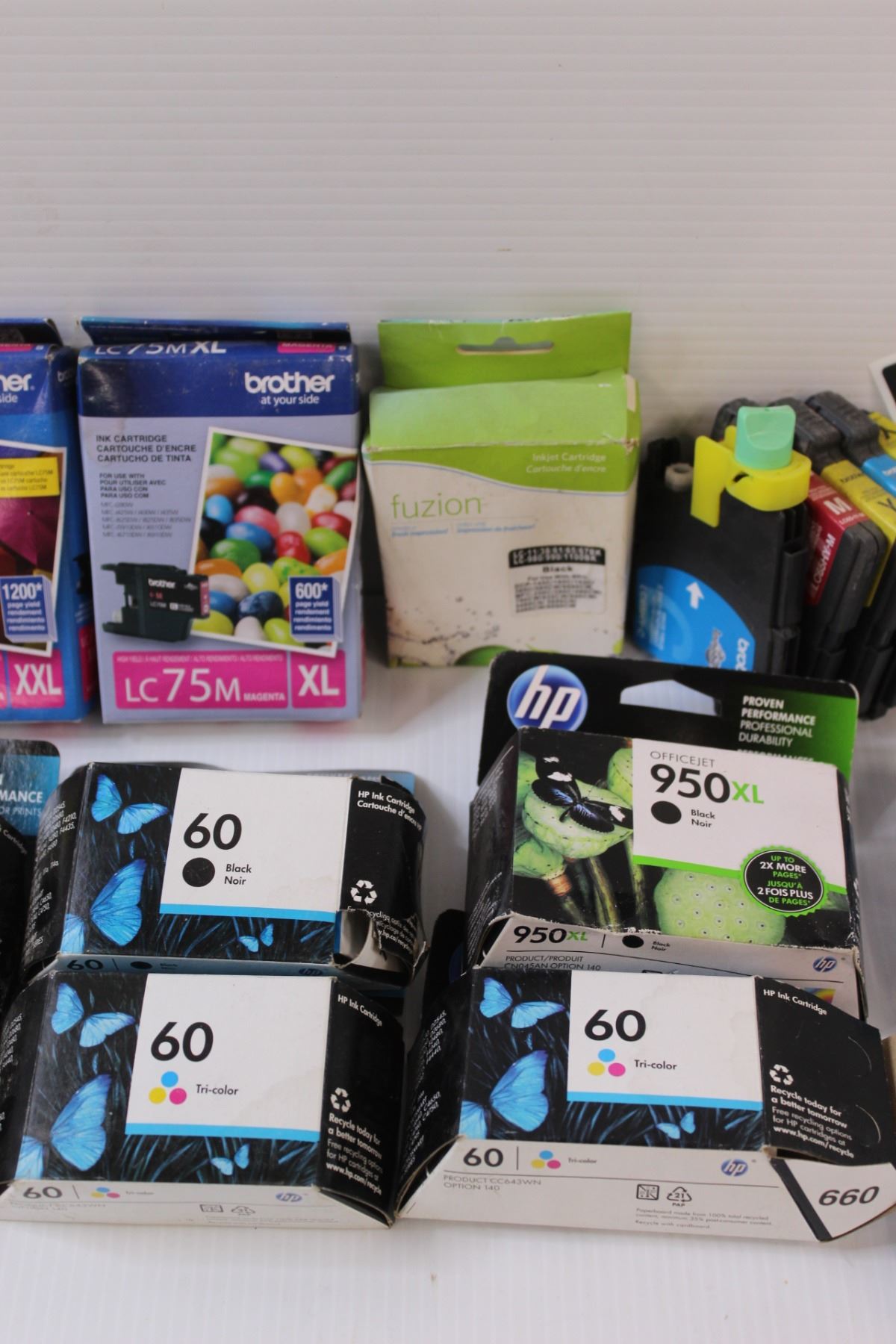 Printer Ink Lot: (12) Brother (Assorted) (11) HP (Assorted) (All Have Best Before Dates of 2015-2017, Expired)