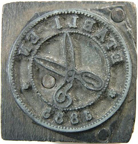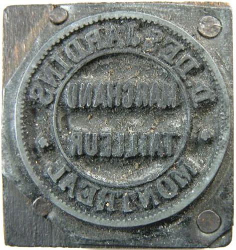 Matched pair of cast metal printing plates individually mounted on wood blocks that were used in the printing of PN Bretons Illustrated History of the Coins and Tokens Relating to Canada published in Montreal in 1894. The pair of engravings for Breton 575 - D Desjardins