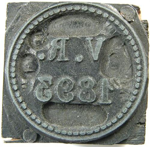 Matched pair of cast metal printing plates individually mounted on wood blocks that were used in the printing of PN Bretons Illustrated History of the Coins and Tokens Relating to Canada published in Montreal in 1894. The pair of engravings for Breton 623 - 1893 Vital Raparie