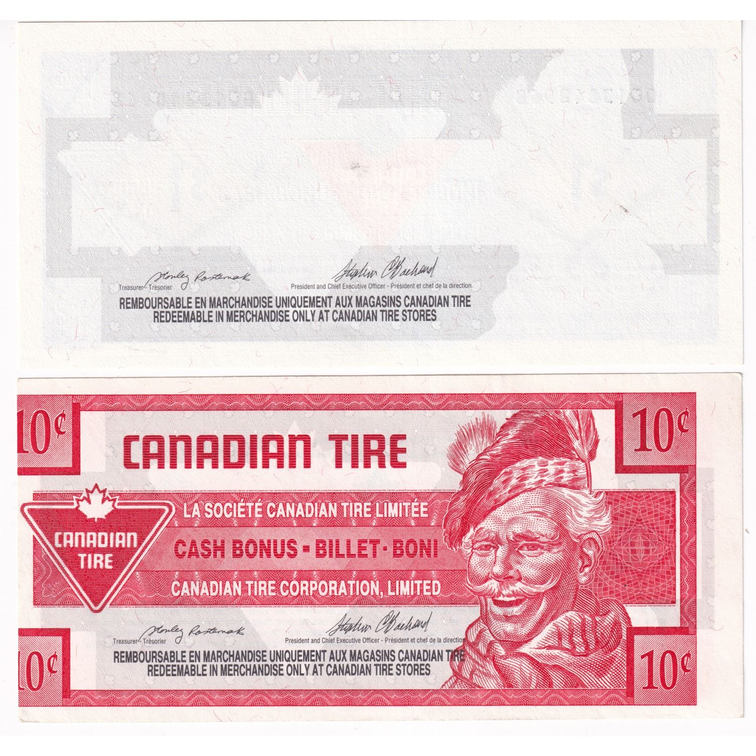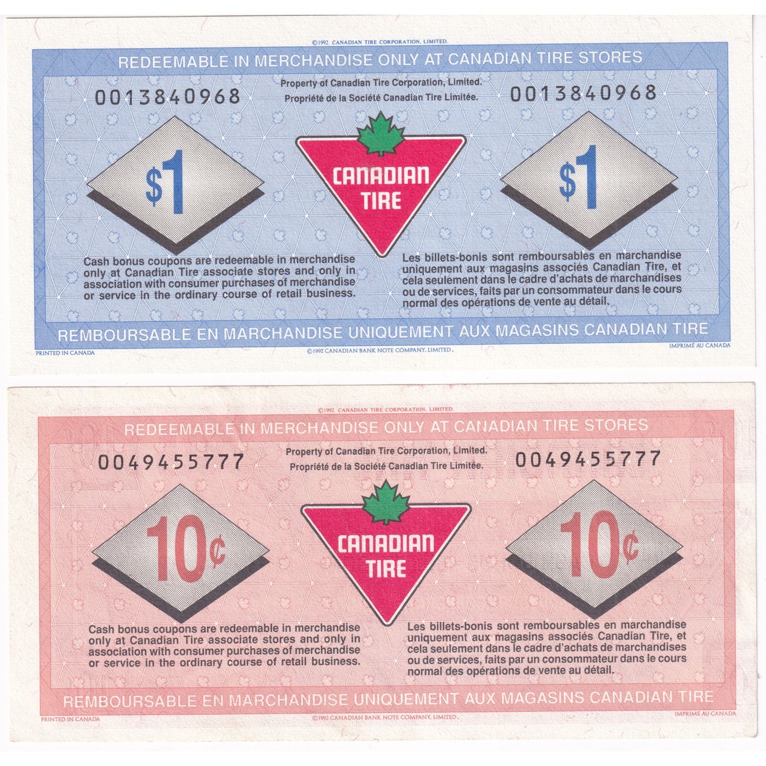 Printing Error! Pair of Canadian Tire 10-cent & $1 Paper Money with printing errors. 2pcs