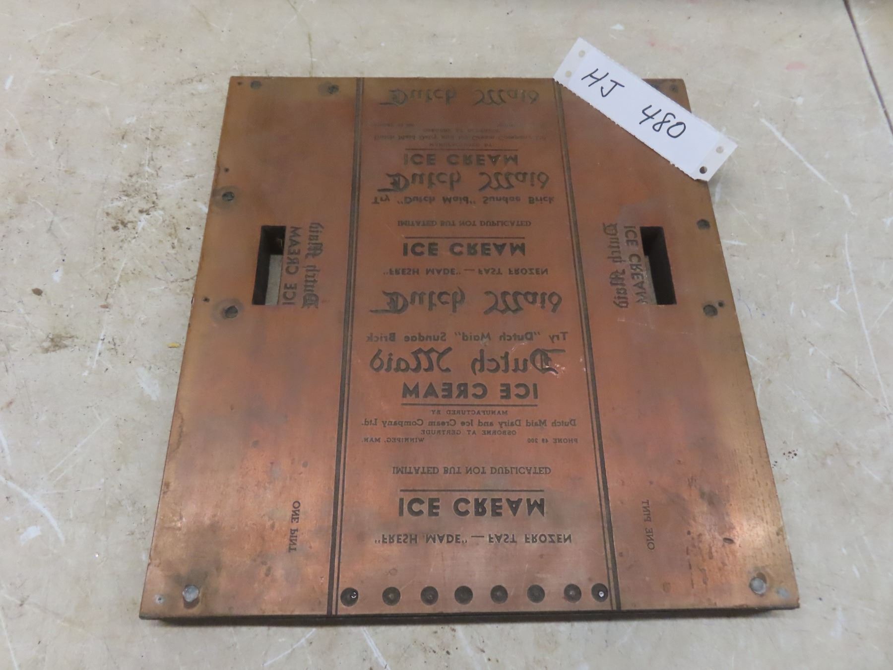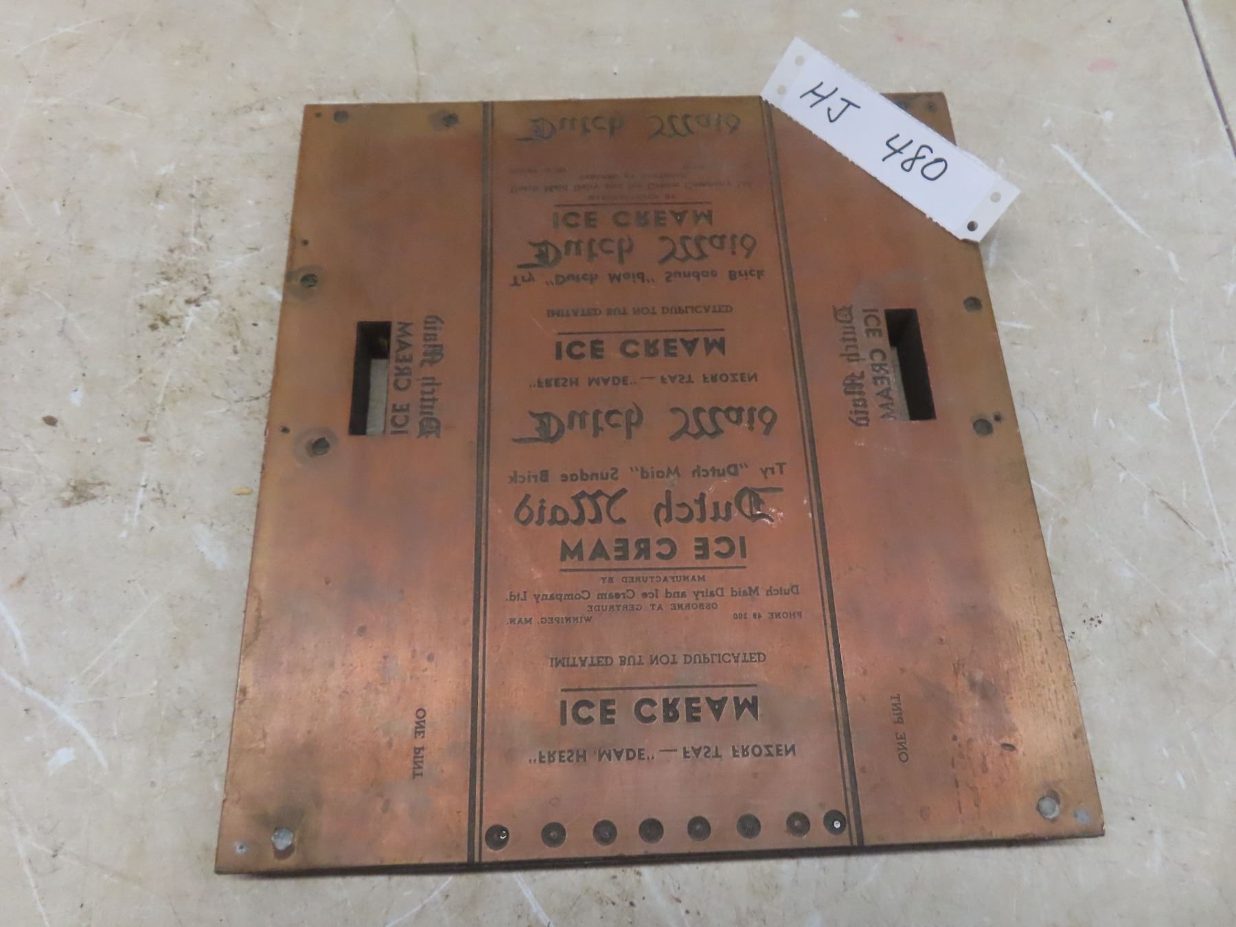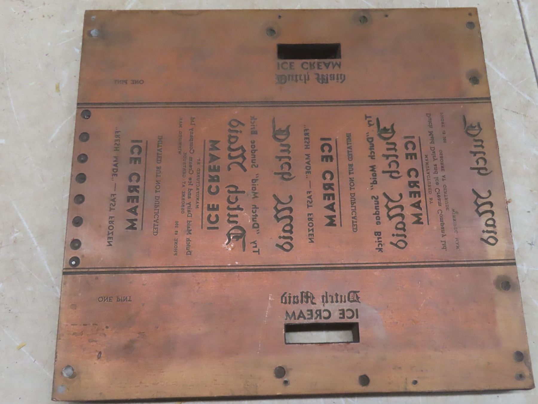 Printing Plate For Dutch Maid Ice Cream, 10 1/2" x 11 1/4".