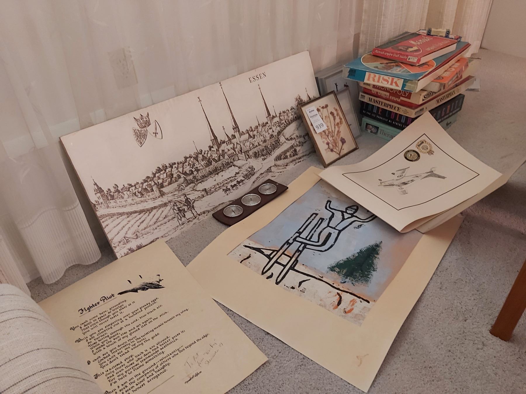 Prints; art, board games, not checked for completeness. Pickup 10am