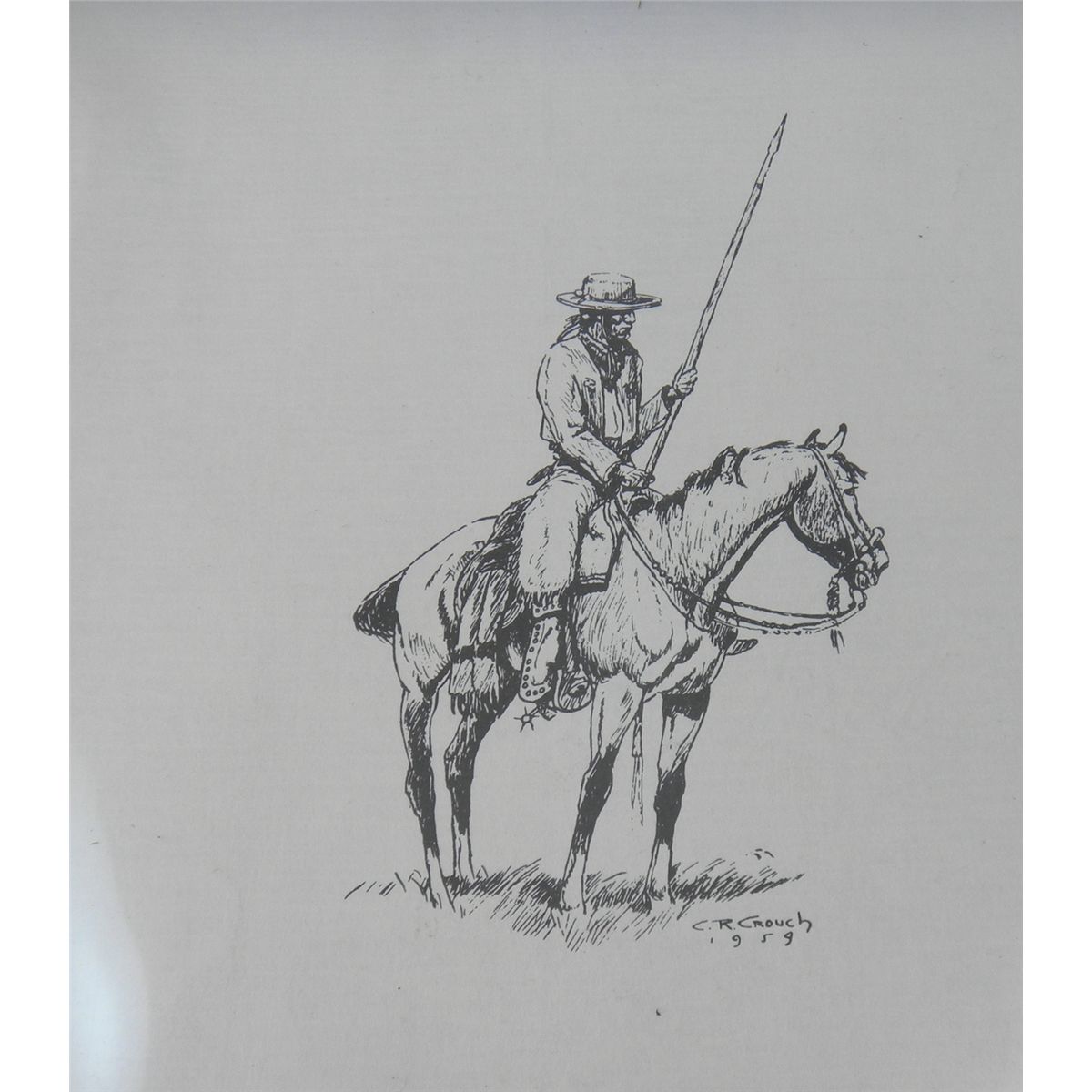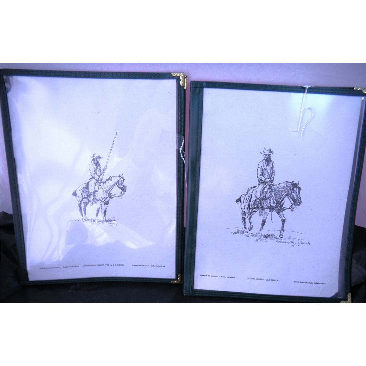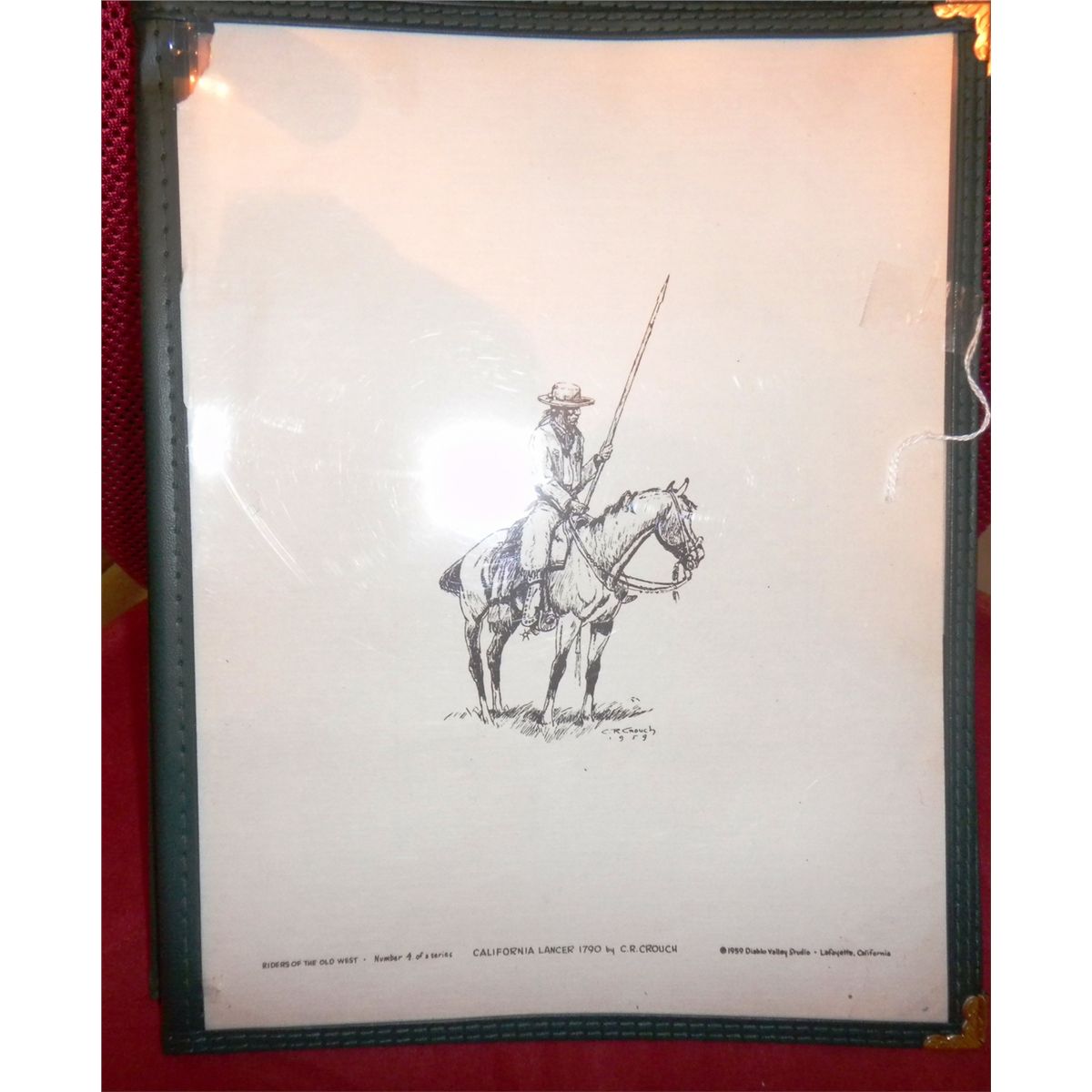 Prints are from Diablo Valley Studio, Lafayette, California, 1959- One prints is No. 1 of four - California Lancer 1790 by C. R. Crouch; Other print is No.1 of four - Old Time Cowboy by C.R. Crouch. Prints measure 9 1/2 x 11 1/2" Shipping $10.00