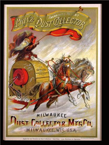 Prinz Dust Collector Paper Sign, the Gugler Litho Co. Milwaukee. Incredible graphics and color. Near mint condition. Framed under glass. 10 X 14 inches image only.