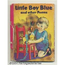 <B>Priscilla Pointer (attributed) - Little Boy Blue and Other Poems Children's Book Cover Original Art (McLoughlin Brothers, 1941).</B></I> Little Boy Blue gathers his faithful toys on a chair in this delicate watercolor illustration. The title logo "Little Boy Blue" is painted on an acetate overlay. The image area is 8.5" x 11.5", and the art is in Excellent condition. A copy of the book is included with this lot. "And they wonder, as waiting the long years through, in the dust of that little chair, what has become of our Little Boy Blue, since he kissed them and put them there." Childhood lost, can be rediscovered with a bid on this superb painting! 2 items <BR><BR><B>Important notice:</B> Heritage usually auctions material at the rate of 200-250 lots per hour. On some occasions eBay Live bid software or the Internet may not be able to keep up with the pace of the auction. We recommend placing a realistic absentee bid now as insurance to avoid disappointment. Occasionally the auctioneer may eliminate or reject an eBay Live bid, and the auctioneer may also reopen a lot after the close of the eBay live bidding (usually because we missed an audience bid), and may reject your bid even if it shows you as the winning bidder. By bidding via eBay Live, you agree that Heritage may award the lot to another bidder at its sole discretion under the circumstances described above or any other reasonable circumstances. Since eBay bids are not shown to us until we open the lot on the floor, we treat those bids just like floor bids. In most cases the floor responds before the eBay bid is presented to us, due to Internet lag time, so for consistency we have made it a policy that floor bids are always considered first over tie eBay live bids. Also please note that all Heritage lots purchased through eBay Live carry a 20% Buyer's Premium. Please make sure you read the Terms and Conditions before you bid.