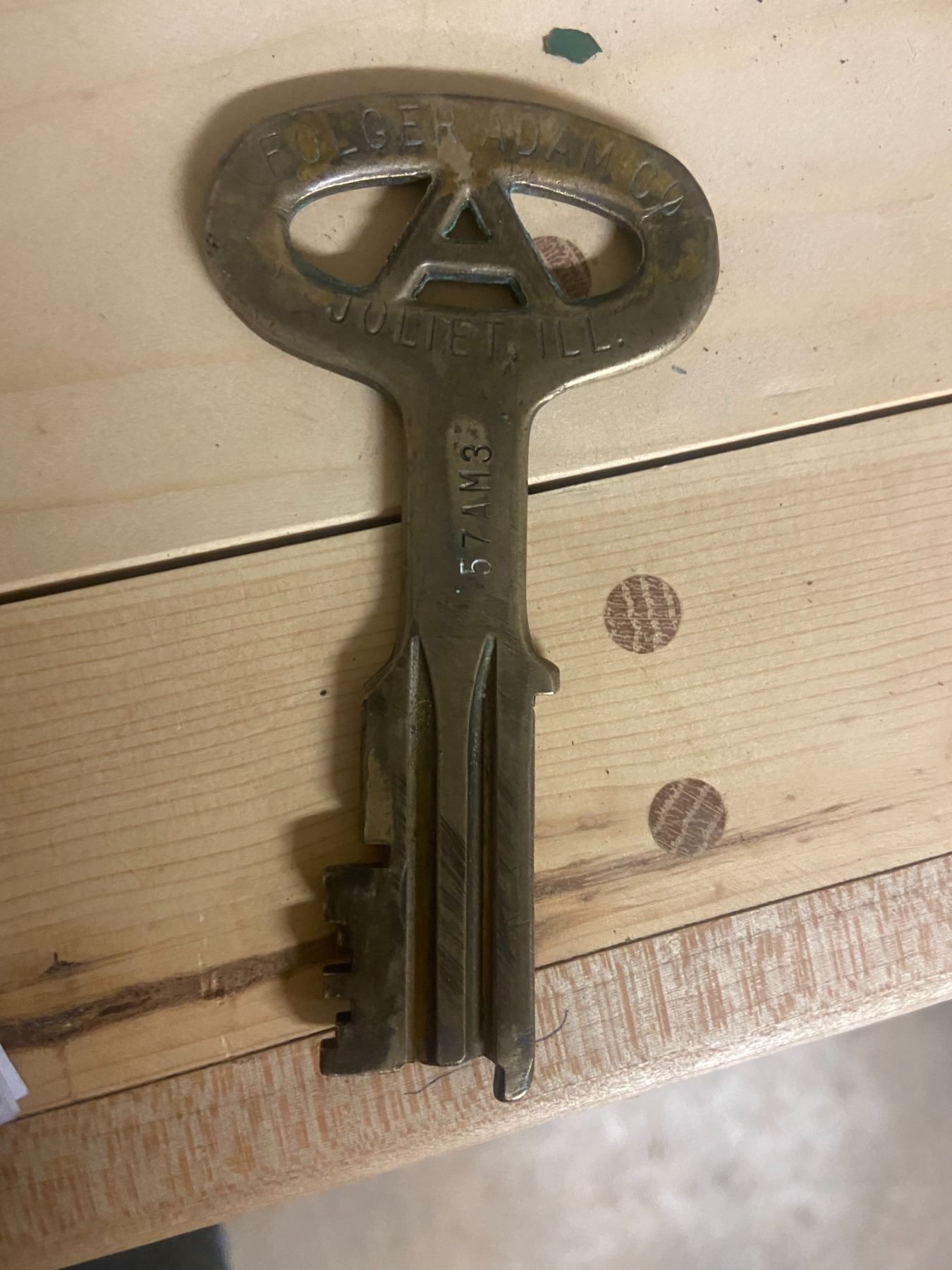Prison Cell Lock C/W Key Stamped Folyer Adam Comp - Juliet ILL. Brass