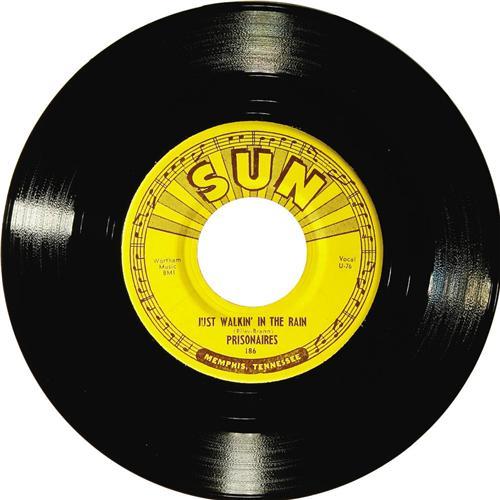 <B>Prisonaires "Just Walking In The Rain" 45 Sun 186 (1953).</B></I> Legendary R&B group's first Sun single isn't often found in this nice of condition. Backing side is "Baby Please". Condition: NM 8.