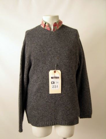 Franklin Birch (Terrence Howard) screen worn, hero, grey long sleeve 'David Moss' sweater, (size M) pink, green, and blue plaid cotton long sleeve button front 'Scotch & Soda' shirt, (size L) and heather sage green short sleeve 'Alfani' t-shirt. (size M) Includes wardrobe tag!