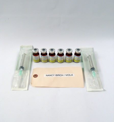Nancy Birch (Viola Davis) screen used, hero, six small 'Pentobarbitone' animal hospital medicine and two syringes. Includes prop tag.