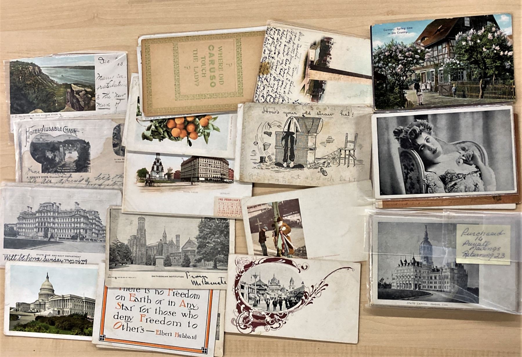 All early. From all over. Mainly USA. Places and subjects. Many postal used. Approx 250 cards. Pictures shown are just a portion of the lot.