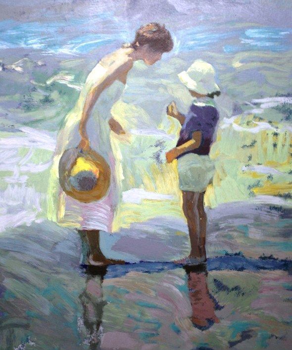 Private Moments by Don Hatfield a limited ediiton serigraph on foamcore #HC IX/CXX shows a mother and her child on the beach. Size is 30" x 26".