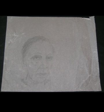 This is a hand drawn sketch from the Burman Studios of a female character from the currently airing TV series Private Practice. The sketch is done with pencil on wax paper and written on the upper right corner is 'Private Practice stroke victim.' Sketch has a small tear on upper left side. (measures approx. 14"x 17")
