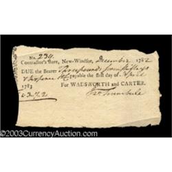Private Scrip Dated December 1782 from the Contractor's Store of Wadsworth & Carter, Signed b