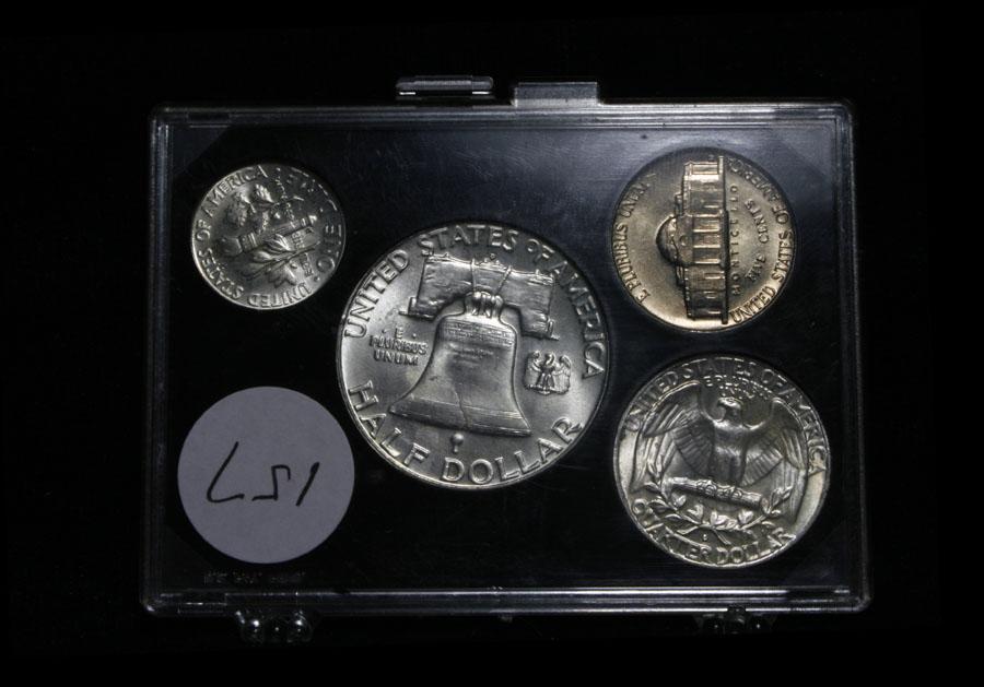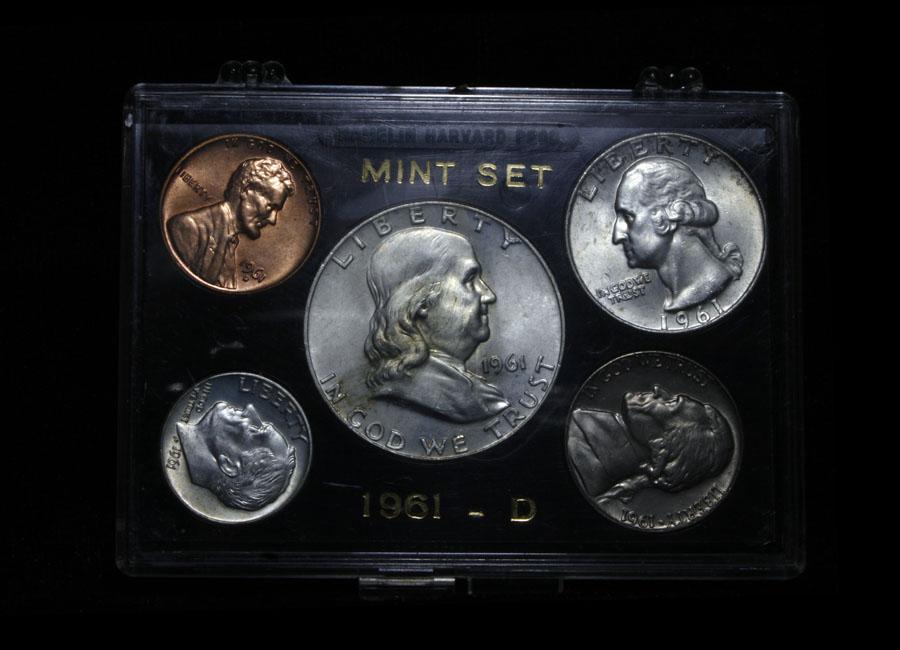 I would estimate the grades to range from ms63 to ms66. This lot includes The entire 1961 Mint Set, which consists of 10 coins, both the 1961-p run and the 1961-d run. It has $1.70 in Face Value of 90% silver, which translates to 1.2294 troy ounces of Silver, or $43.32 in Silver value. This lot is part of a cool private consignment which I have broken up into 17 lots in this auction. Half of the lots are very attractive all original and mostly attractively toned Roosevelt dimes which are in not often seen triple 2x2 holders. most have obviously been carefully hand picked. The other 8 lots are fantastic cherry picked Mint sets running from 1957-1964, all are wonderful, and again in cool old fashioned folders. Estimated Value $60