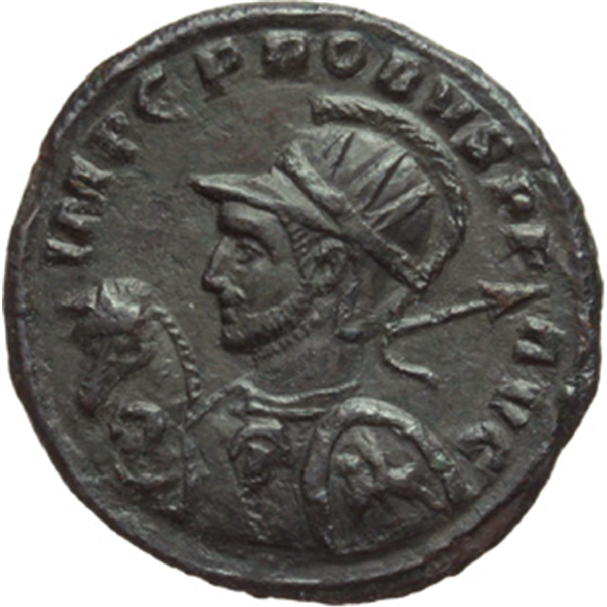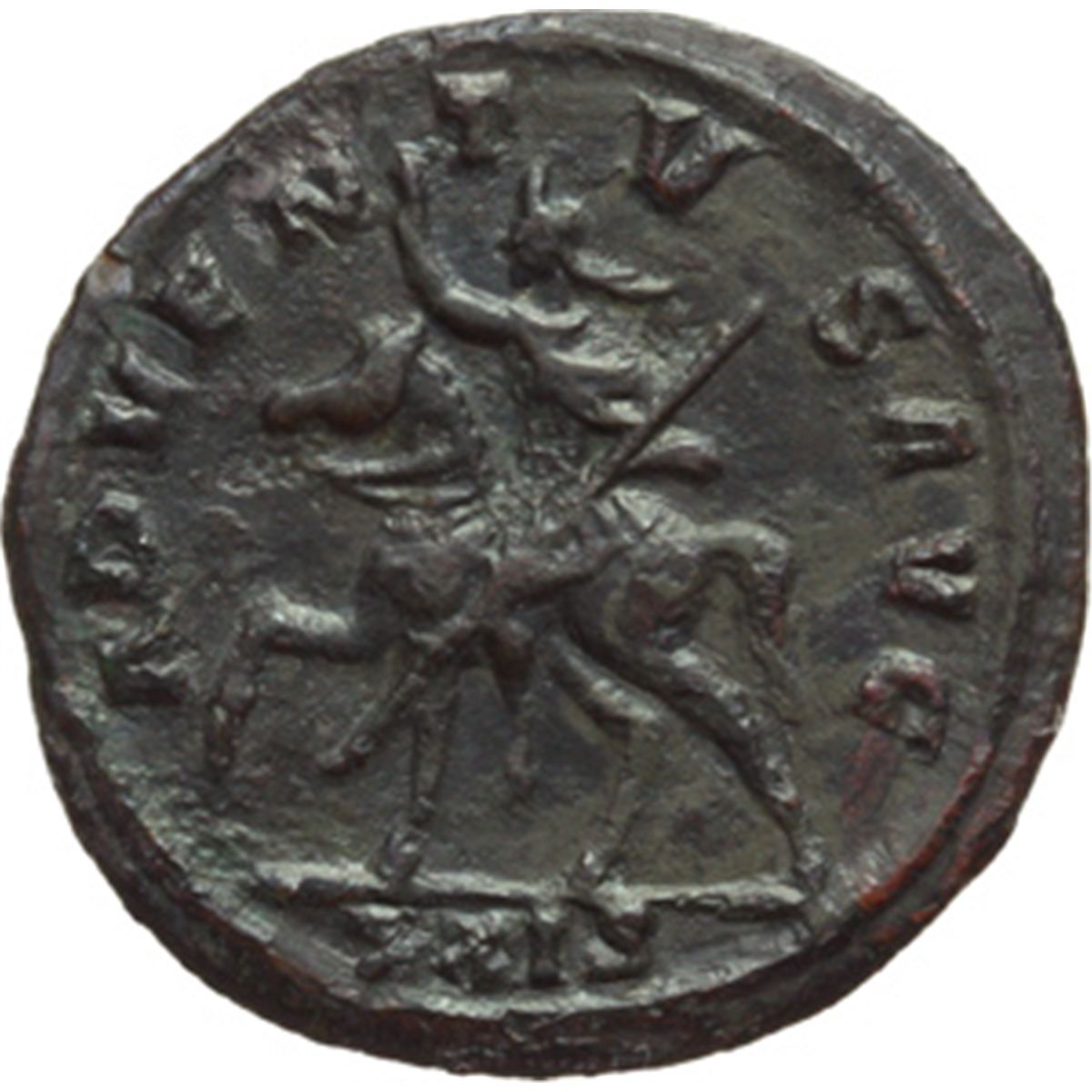 Impero Romano. Probo (276-282). Antoniniano, Siscia. D/ IMP C PROBVS PF AVG. Busto elmato, radiato e corazzato a sinistra, tiene scudo e lancia. A sinistra, in secondo piano, il busto del suo cavallo. R/ ADVENTVS AVG. Probo, su cavallo al passo a sinistra, tiene scettro e solleva la mano destra. In esergo: XXIS. RIC 627. AE. g. 4.13 mm. 22.50 R. Molto raro. SPL/qSPL.
