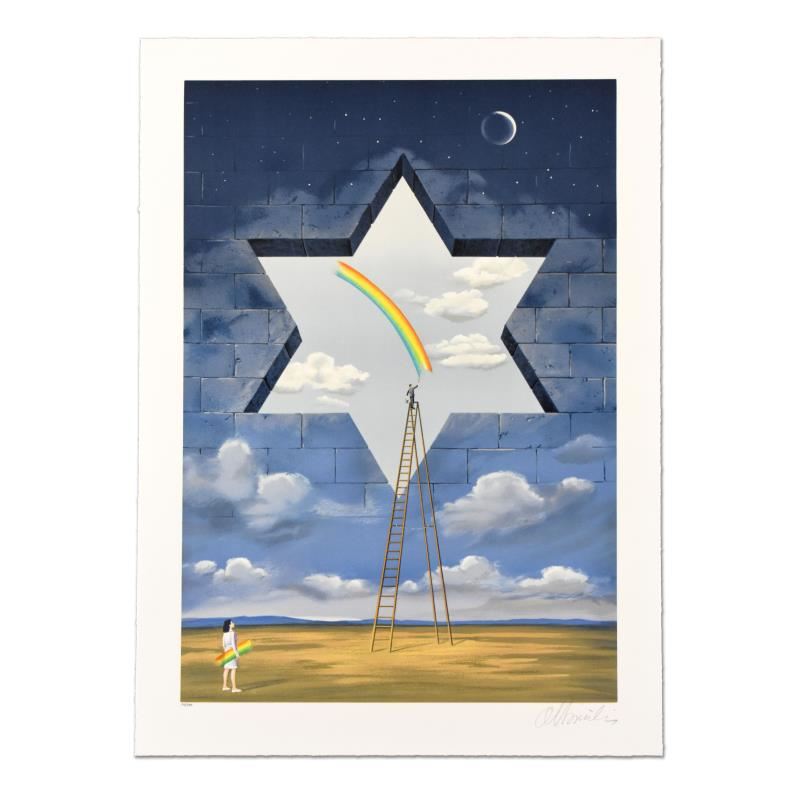 "Proclamation Of Value" is a limited edition hand pulled original lithograph on museum quality deckle edge paper, numbered and hand signed by Rafal Olbinski. Includes Letter of Authenticity. Measures approx. 24" x 34.5" (with border), 20" x 30" (image).