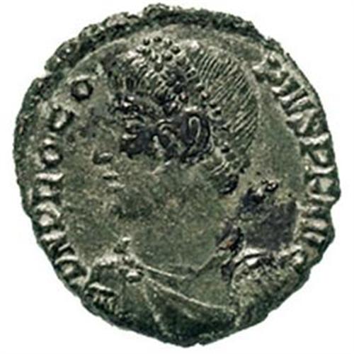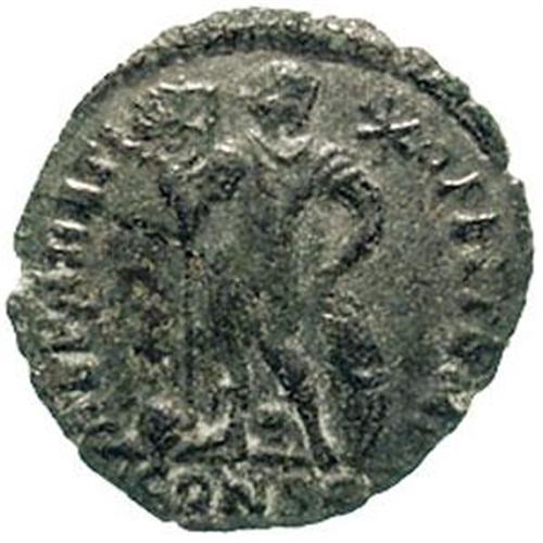 Procopio (365-366). AE 19 mm. Costantinopoli. D/ Busto diademato a sinistra. R/ REPARATIO FEL TEMP. L'Imperatore, stante di fronte con il capo rivolto a destra, tiene labaro e scudo. RIC 17 (a). gr. 2.52 RR. AE. Patina verde. Bel BB+.