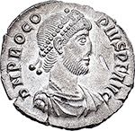 Procopius (365-366). Siliqua, Constantinople. Obv. DN PROCOPIVS PF AVG. Pearl-diademed, draped and cuirassed bust right. Rev. VOT/V in wreath; C.A in exergue. RIC 13e. AG. g. 1.60 mm. 18.00 RRR. Minor nicks, otherwise Nearly EF. Very rare. Impero Romano. RIC 13e. AG. g. 1.60 mm. 18.00 RRR.