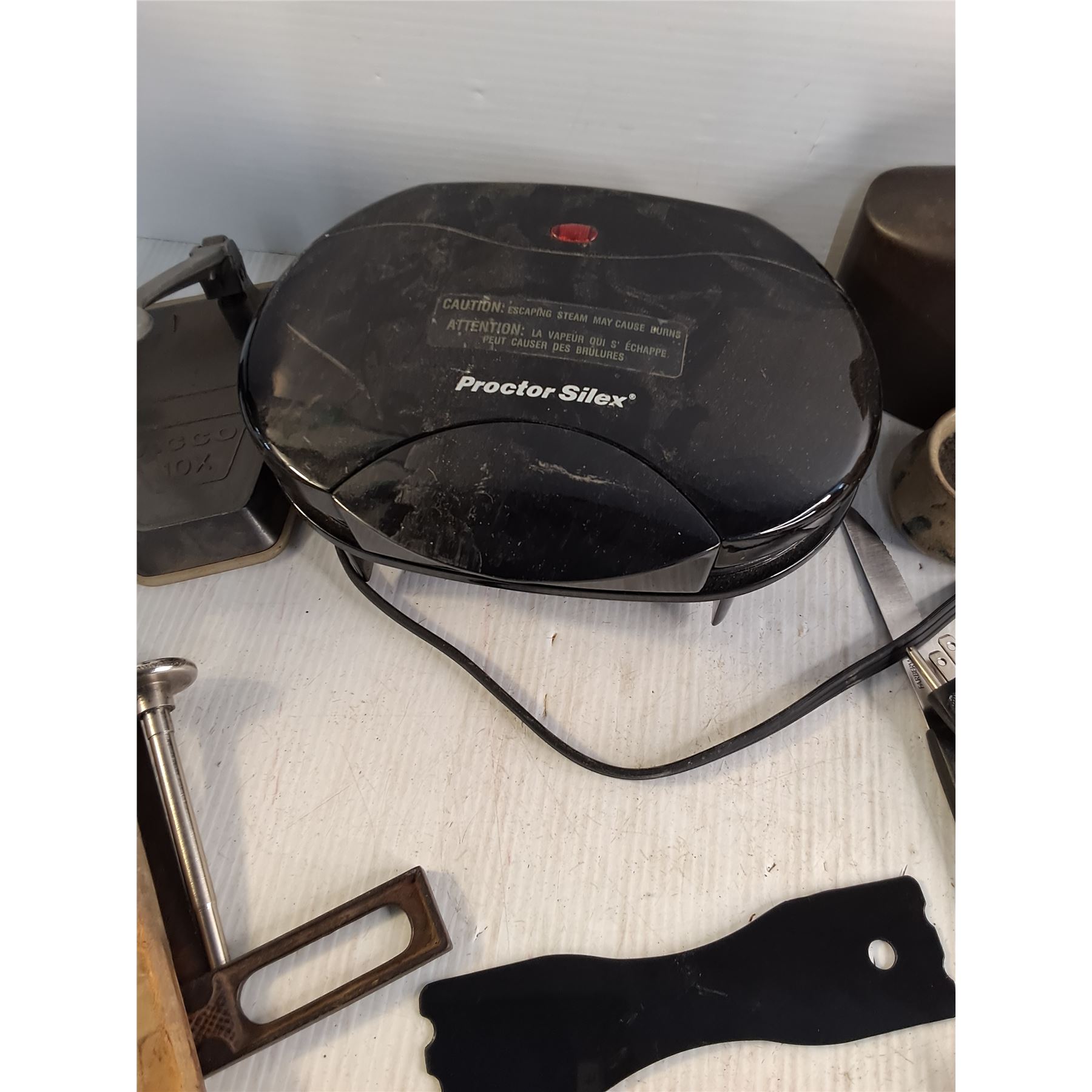 Proctor Silex Compact Grill- Powers On, Extendable Curtains Rod, Hole Puncher, (9) Tongue Planes, Mi
