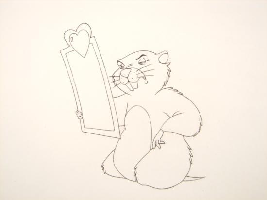 In this drawing from an animated special titled A Valentine For YouGopher gazes grumpily at his own image in a mirror. This would be an excellent addition to any animation art collection.