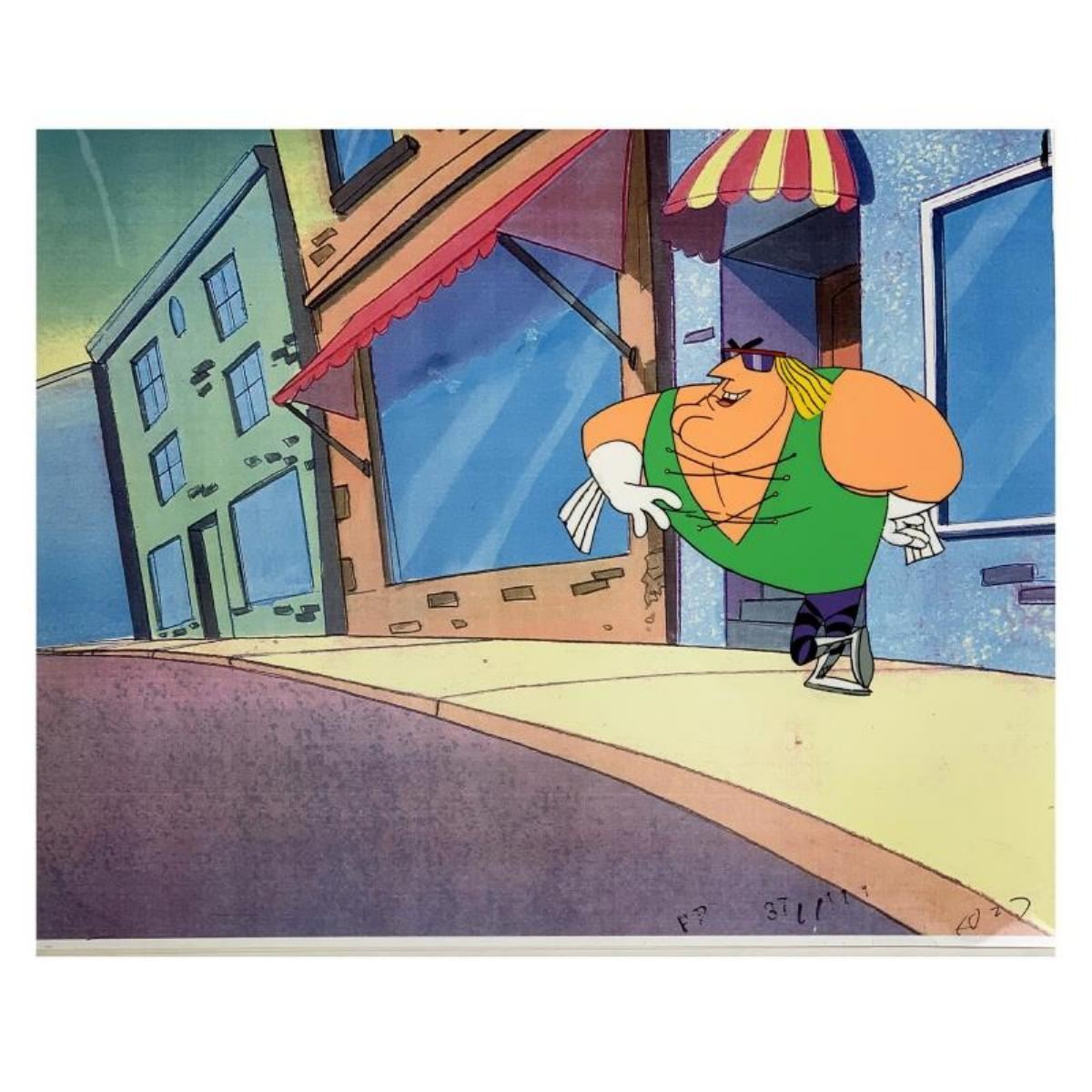 This is an original production cel used in the animated series The Pink Panther. This animated cel comes with a color background and includes 1 production sketch(es). Includes Letter of Authenticity. Measures approximately 11" x 12.5"