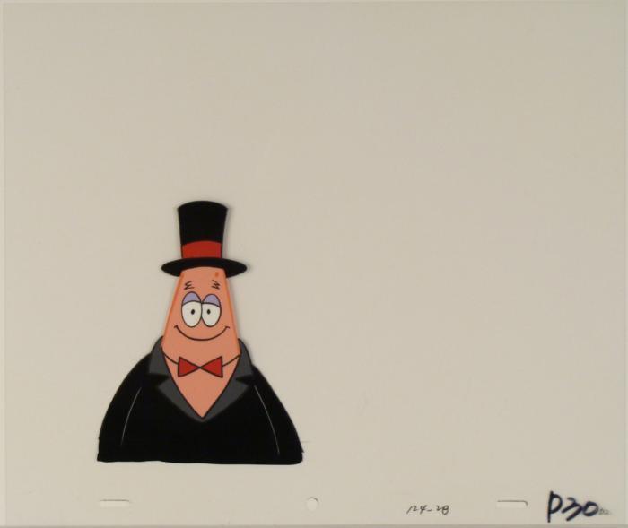 This original animation cel is from the Nickelodeon TV show SpongeBob Squarepants. The story takes place under the deep blue sea in Bikini Bottom, where SpongeBob resides. SpongeBob, who is a yellow, porous sponge, is your typical happy-go-lucky character, as he is always cheerful and enjoys making people laugh. Patrick Star, SpongeBob's neighbor who is a starfish, is your average children's show idiot, as he boasts knowing nothing and is often getting himself into ridiculous situations. Between the homes of these two lies the home of the miserable Squidward, a squid, who is known for being grouchy and playing tricks on SpongeBob and Patrick. Both SpongeBob and Squidward work at the Krusty Krab, a fast food business run by the greedy money-loving Mr. Krabs, a crab, the arch rival of the evil, possibly misunderstood, Plankton. Another neighbor, Sandy Cheeks, an athletic squirrel who normally wears an astronaut's space suit, was introduced in "Tea at the Treedome." She spends most of her time inventing and experimenting. Original Production Animated Cel Overall Size of Cel: 10 1/2" x 12 1/2" Excellent ConditionThis is an original hand-painted cel set-up used in the production of an episode of "SpongeBob SquarePants." Each one-of-a-kind set-up represents a slight change in position of the characters. When individually photographed and projected in rapid succession, the images appear to move.
