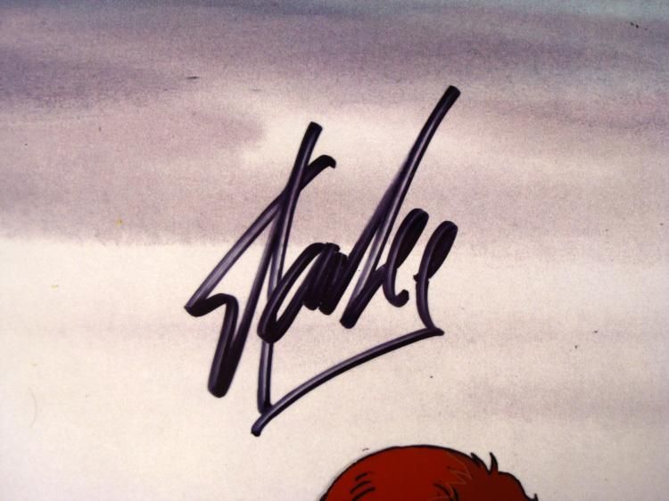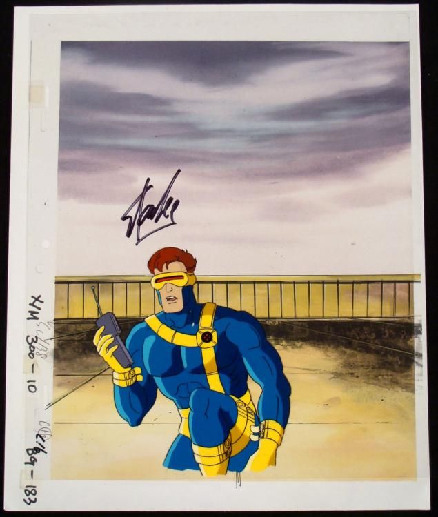This is an original signed production cel and printed background are from the hit series X-Men. Stan Lee signature is located on the top left of cel in black sharpie. * Under a cloud of increasing anti-mutant sentiment, Professor Xavier creates a haven at his Westchester mansion to train young mutants to use their powers for the benefit of humanity, and to prove mutants can be heroes. Xavier recruited Cyclops, Iceman, Angel, Beast and Jean Grey calling them "X-Men" because they possessed the "x-gene", an ability normal humans lacked. Early issues introduced the team's arch enemy, Magneto and his Brotherhood of Evil Mutants, who would later battle the X-Men for years. * Can anyone here me?!?!? Damn this phone!! * * Original Animated Cel and Printed Background * Overall Size of the Cel: 10 1/2" x 12 1/2" Overall Size of the background: 10" x 14" Excellent Condition This is an original hand-painted cel set-up used in the production of an episode of X-Men titled "Beauty and the Beast." Each one-of-a-kind set-up represents a slight change in position of the characters. When individually photographed and projected in rapid succession, the images appear to move. * To create production cels, the original animator's drawing is transferred onto an acetate cel (by hand-inking and/or photo copying). The cel is then hand-painted on the reverse side. The background accompanying this set-up is a reproduction background. * The cel and original background is ready to be matted and framed. The animators notations are located on the left side of the cel and background. The Certificate of Authenticity is from Choice Collectibles. The cel and background come in a protective sleeve. *