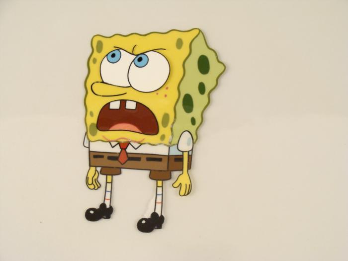 This original animation cel is from the Nickelodeon TV show SpongeBob Squarepants. The story takes place under the deep blue sea in Bikini Bottom, where SpongeBob resides. SpongeBob, who is a yellow, porous sponge, is your typical happy-go-lucky character, as he is always cheerful and enjoys making people laugh. Patrick Star, SpongeBob's neighbor who is a starfish, is your average children's show idiot, as he boasts knowing nothing and is often getting himself into ridiculous situations. Between the homes of these two lies the home of the miserable Squidward, a squid, who is known for being grouchy and playing tricks on SpongeBob and Patrick. Both SpongeBob and Squidward work at the Krusty Krab, a fast food business run by the greedy money-loving Mr. Krabs, a crab, the arch rival of the evil, possibly misunderstood, Plankton. Another neighbor, Sandy Cheeks, an athletic squirrel who normally wears an astronaut's space suit, was introduced in "Tea at the Treedome." She spends most of her time inventing and experimenting. Shown here is SpongeBob with his mouth open. Original Production Animated Cel and Drawing Original "rough" animation drawing, in black non-photo blue , red, and yellow pencil, with notations in black and non-photo blue.Overall Size of Drawing: 10 1/2" x 12 1/2" Overall Size of Cel: 10 1/2" x 12 1/2" Excellent ConditionThis is an original hand-painted cel set-up used in the production of an episode of "SpongeBob SquarePants." Each one-of-a-kind set-up represents a slight change in position of the characters. When individually photographed and projected in rapid succession, the images appear to move.