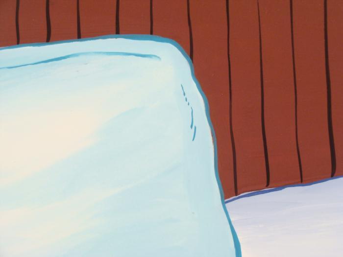 This original hand-painted background and animation cel are from the Nickelodeon TV show SpongeBob Squarepants. The story takes place under the deep blue sea in Bikini Bottom, where SpongeBob resides. SpongeBob, who is a yellow, porous sponge, is your typical happy-go-lucky character, as he is always cheerful and enjoys making people laugh. Patrick Star, SpongeBob's neighbor who is a starfish, is your average children's show idiot, as he boasts knowing nothing and is often getting himself into ridiculous situations. Between the homes of these two lies the home of the miserable Squidward, a squid, who is known for being grouchy and playing tricks on SpongeBob and Patrick. Both SpongeBob and Squidward work at the Krusty Krab, a fast food business run by the greedy money-loving Mr. Krabs, a crab, the arch rival of the evil, possibly misunderstood, Plankton. Another neighbor, Sandy Cheeks, an athletic squirrel who normally wears an astronaut's space suit, was introduced in "Tea at the Treedome." She spends most of her time inventing and experimenting. This appears to be a pillow on a bed.Original Production Background and Animated Cel Overall Size of Background: 10 1/4" x 14" Overall Size of the Cel: 10 1/2" x 12 1/2" Very good condition This is an original hand-painted cel set-up used in the production of an episode of "SpongeBob SquarePants." Each one-of-a-kind set-up represents a slight change in position of the characters. When individually photographed and projected in rapid succession, the images appear to move.