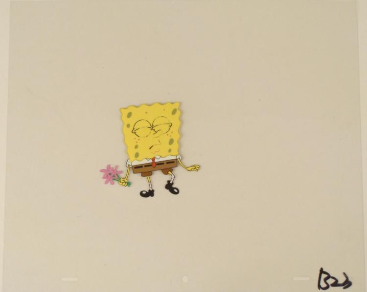 This original animation cel is from the Nickelodeon TV show SpongeBob Squarepants. The story takes place under the deep blue sea in Bikini Bottom, where SpongeBob resides. SpongeBob, who is a yellow, porous sponge, is your typical happy-go-lucky character, as he is always cheerful and enjoys making people laugh. Patrick Star, SpongeBob's neighbor who is a starfish, is your average children's show idiot, as he boasts knowing nothing and is often getting himself into ridiculous situations. Between the homes of these two lies the home of the miserable Squidward, a squid, who is known for being grouchy and playing tricks on SpongeBob and Patrick. Both SpongeBob and Squidward work at the Krusty Krab, a fast food business run by the greedy money-loving Mr. Krabs, a crab, the arch rival of the evil, possibly misunderstood, Plankton. Another neighbor, Sandy Cheeks, an athletic squirrel who normally wears an astronaut's space suit, was introduced in "Tea at the Treedome." She spends most of her time inventing and experimenting. * Think you are invisible and you will be invisible... It has worked once before, who says it won't work again?? * Original Production Animated Cel Overall Size of Cel: 10 1/2" x 12 1/2" Very Good Condition This is an original hand-painted cel set-up used in the production of an episode of "SpongeBob SquarePants." Each one-of-a-kind set-up represents a slight change in position of the characters. When individually photographed and projected in rapid succession, the images appear to move. * To create production cels, the original animator's drawing is transferred onto an acetate cel (by hand-inking and/or photo copying). The cel is then hand-painted on the reverse side. * The cel received by the winning bidder may be ever so slightly different from the one in the auction photos. * The cel is ready to be matted and framed. The animator's notations are at the bottom of the cel. There is some paint fade to Spongebob's outline. *