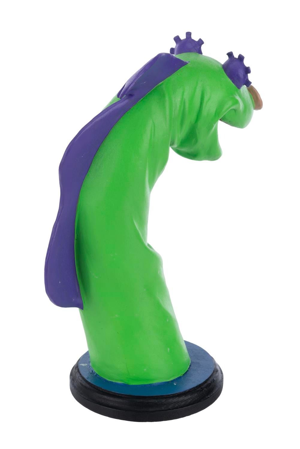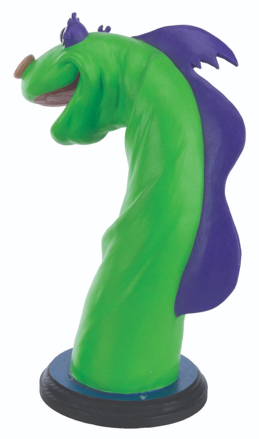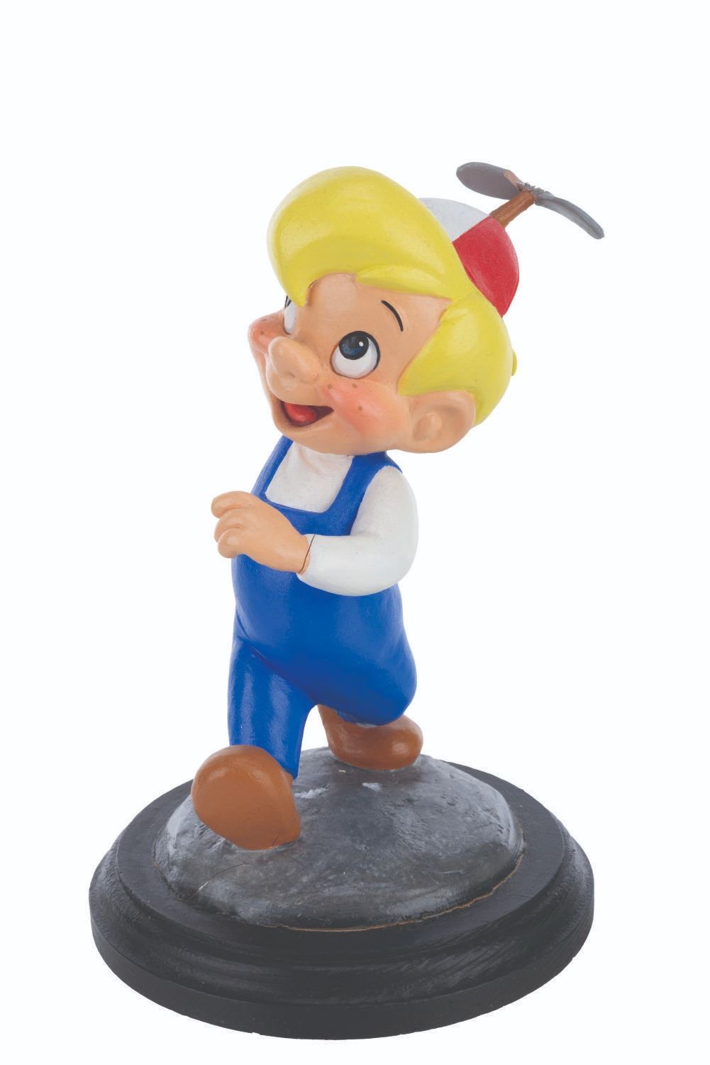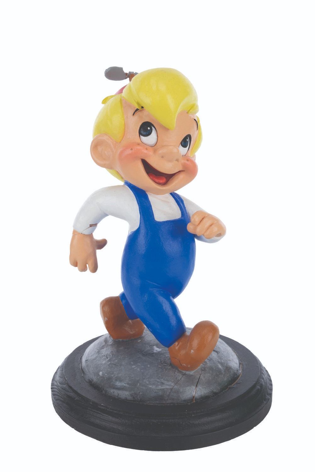 (DIC, 1988) A rare pair of animator’s maquettes for “The New Adventures of Beany and Cecil.” Maquettes are used by animators as a three-dimensional reference while animating the character. These were made by Kent Melton, who sculpted dozens of maquettes for Walt Disney, Warner Brothers, and other animation studios. Constructed with polymer clay and hand-painted, both Cecil and Beany maquettes are stamped with the number 5 and measure 3” x 7.5” x 10.25” tall and 2” x 4” and 6.75” tall on 0.5” thick wooden bases. Cecil displays in very good condition with a light crack along the bottom edge connecting the body to the base, while Beany displays in good condition with cracks to both wrists, hat propeller, right foot, and base. This lot requires special shipping arrangements. Please inquire before bidding.
