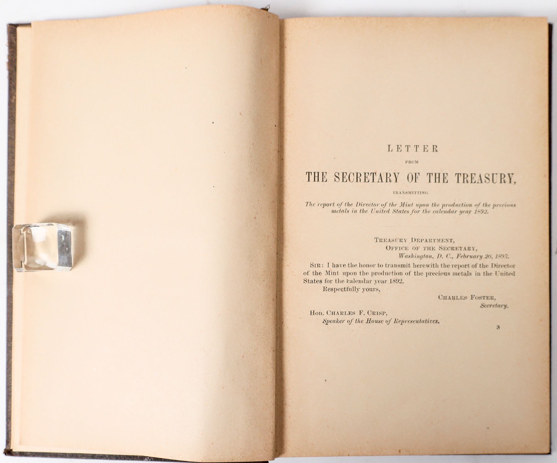 Report of the Mint 1893. 260pp with index. Front fly page creased and torn.