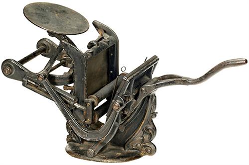 "Boston-Tiegel" Professionelle Buchdruck-Handpresse, unbezeichnet, mit Schließrahmen, Tiegelgröße: 9,5 x 14,5 cm. Alte Walzenbezüge. - Ideale Maschine für Anwender und Ausstellungszwecke aller Art.