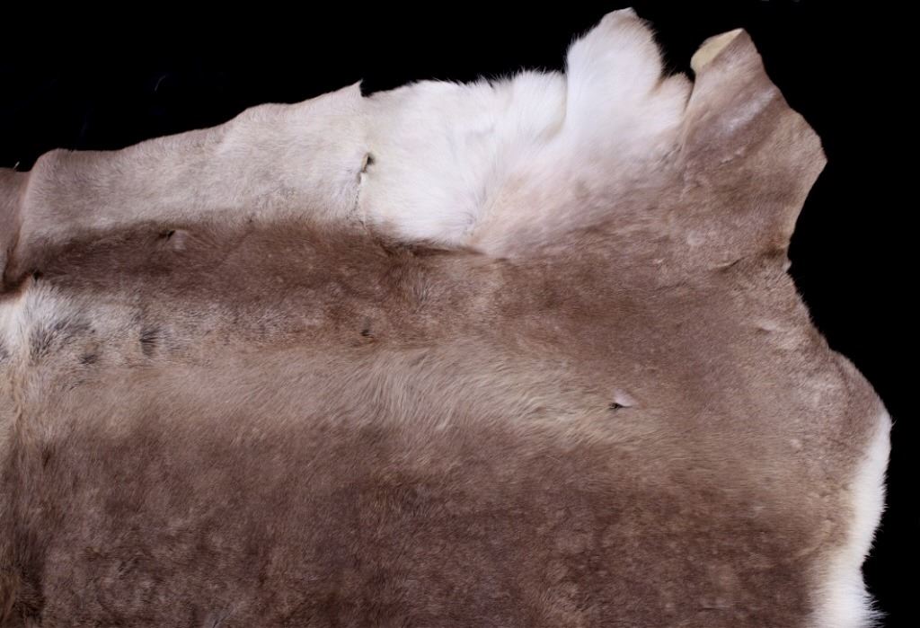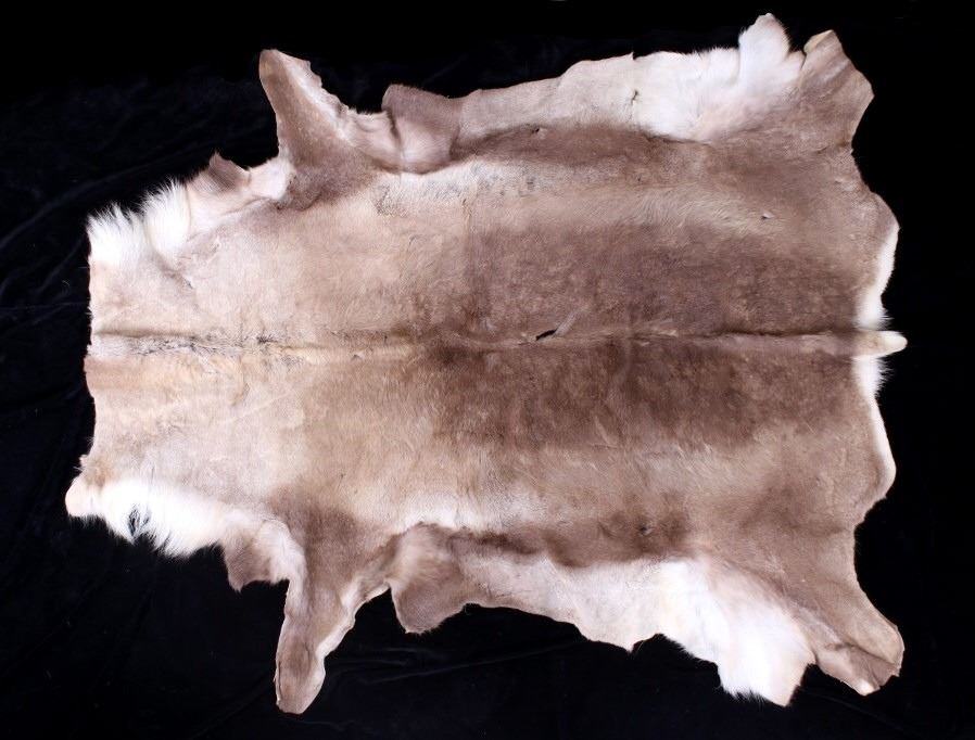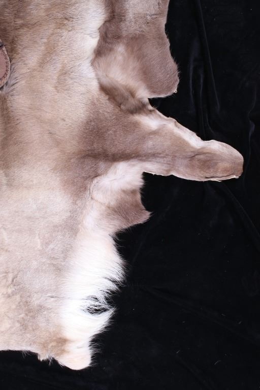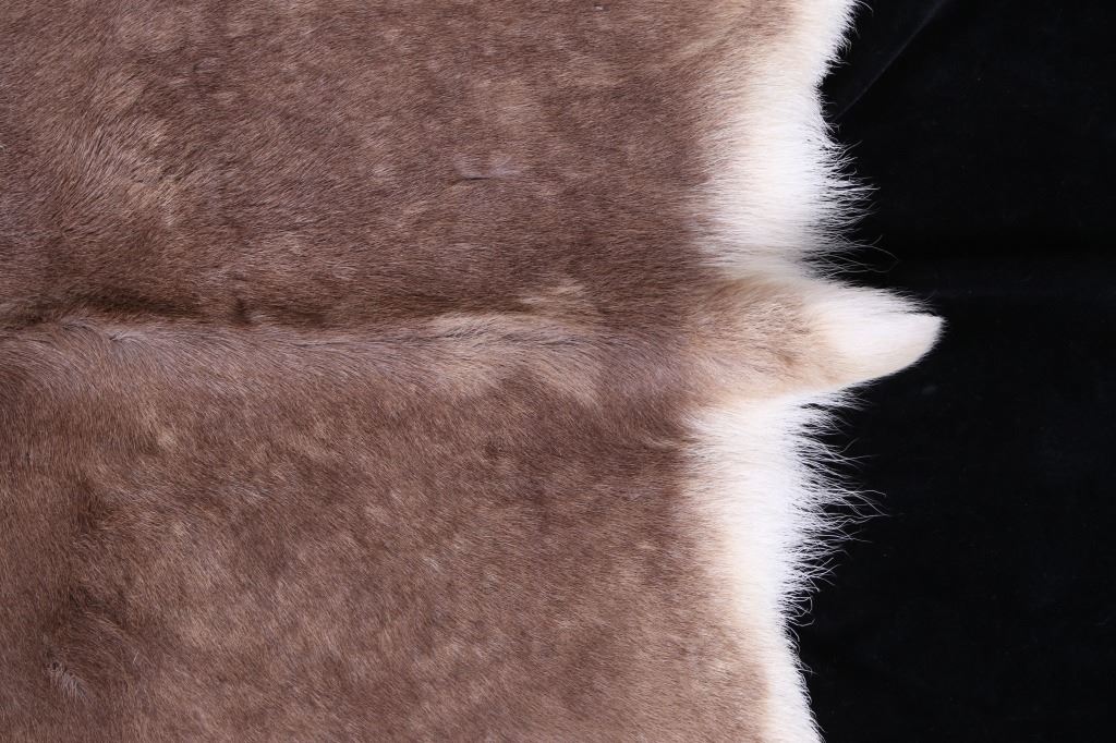 Available for your bidding pleasure is this professionally tanned Caribou Hide. This wonderful Caribou Hide shows excellent color, with a rich brown medial ridge on the back, that fades to lighter brown on the torso. This hide also shows white and cream colored fur. The hide shows excellent condition with thick hide and well cared for fur. The hide measures