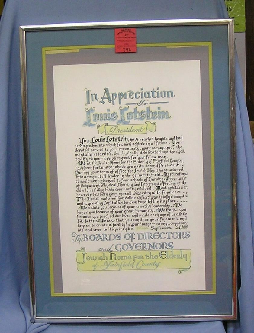 Professionally matted and framed appreciation award in beautiful modern frame est. value $40.00-$50.00