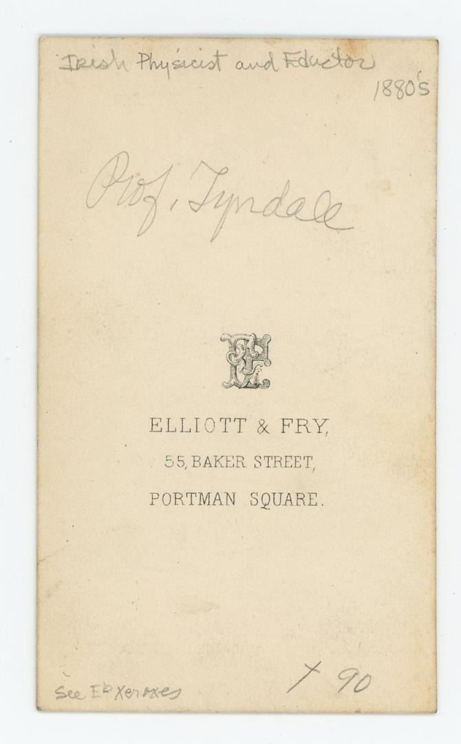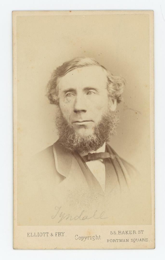 Signed on back. Elliott & Fry Photographer, London. John Tyndall (2 August 1820 – 4 December 1893) was an Irish physicist. His scientific fame arose in the 1850s from his study of diamagnetism. Later he made discoveries in the realms of infrared radiation and the physical properties of air, proving the connection between atmospheric CO2 and what is now known as the greenhouse effect in 1859.